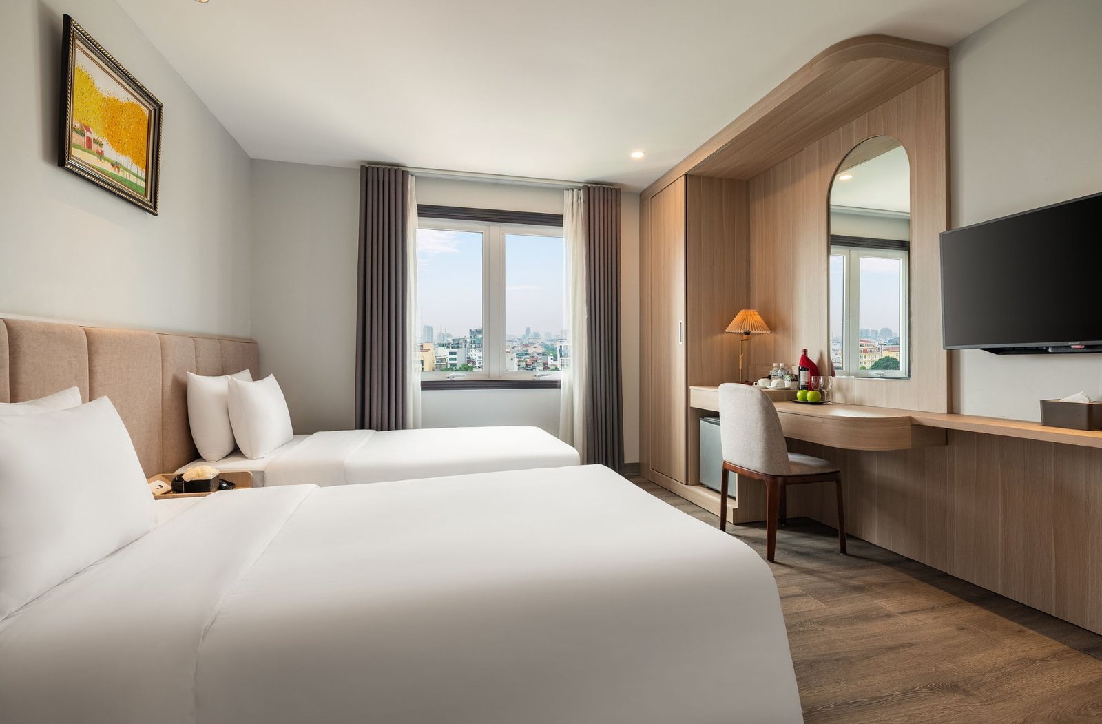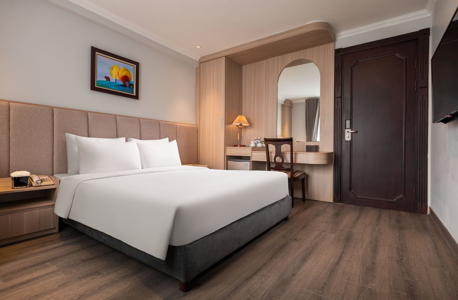 The hotel is nestled in the heart of Ba Dinh district, mere minutes from Hanoi’s iconic sites like Hoan Kiem Lake, Hang Dau Booth, the Old Quarter, vibrant food courts, and various attractions. Positioned along Nguyen Truong To street, this multi-storey hotel offers a range of rooms and types to suit your preferences. A sojourn here promises a splendid experience for your exploration and travel in Hanoi.