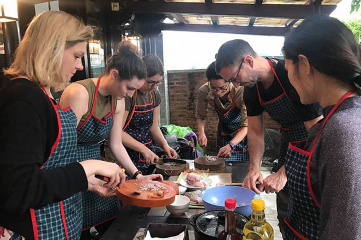 - Experience the essence of Hanoi’s west as our knowledgeable local guide and driver lead you on a 35-minute journey from the city center. Delve into the rich history at a market steeped in tradition since the Le King Dynasty. Witness the vibrant marketplace where locals trade goods, creating a colorful tapestry of daily life.Stroll through stalls brimming with fish, vegetables, and fruits, engaging with sellers and immersing yourself in the local atmosphere. Venture into nearby vegetable farms, where a variety of crops and fruit trees flourish. Interact with farmers, learning about their cultivation techniques and gaining insights into their way of life.Cap off your day at a host’s home, where you’ll partake in a hands-on cooking experience. Discover the secrets behind crafting authentic Vietnamese dishes using fresh ingredients. Engage in conversations about Vietnamese customs over traditional refreshments before our guide and driver accompany you back to your hotel, concluding your unforgettable Hanoi tour.